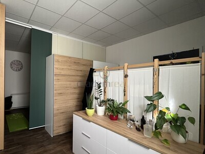 vejdete do velkého pokoje, který je rozdělen posuvnou textilní stěnou na
